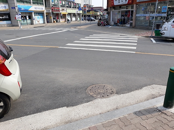 ▲ 한쪽 차로에 건널목 표시가 없는 교차로.