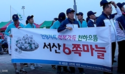 올해 마늘값 폭락으로 농가들의 심기가 불편하다.태안군장애인체육회(회장 가세로)가 지난달 충남장애인체육대회를 주관하면서 태안공설운동장에서 열린 선수단 입장식 때 서산시선수단이 '서산육쪽마늘' 홍보현수막을 들고 입장했다(사진).무대 뒤에서 입장식을 준비하던 다른 지역 선수와 임원들도 "태안에서 서산마늘을 홍보하는 일은