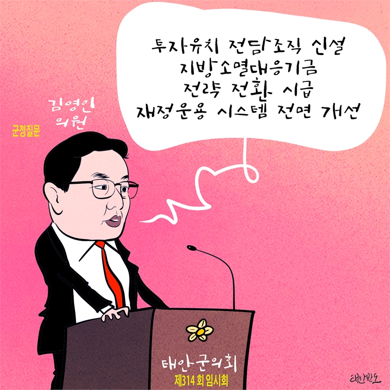제314회 태안군의회 임시회 군정질문 주요내용“투자유치 전담조직 신설·지방소멸대응기금 전략 전환 시급” “예ㆍ결산 지적사항 개선과 효율적 운용방안 필요”