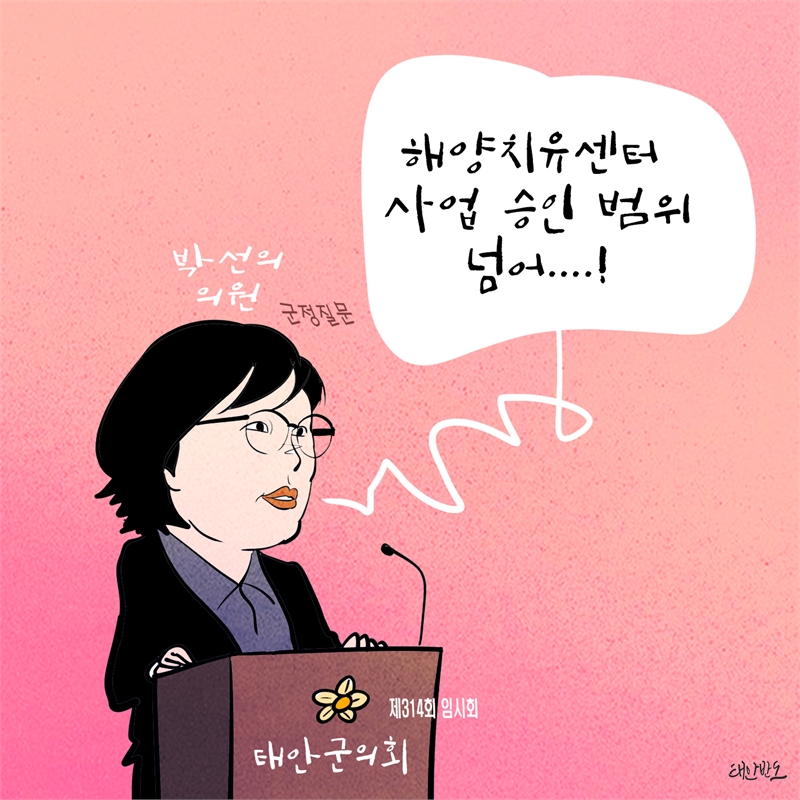 태안군의회 박선의 의원은 제314회 임시회(2025. 9. 5~19)서 해양치유센터 사업이 국립공원 구역 내에서 추진되면서, 환경부고시 변경 승인 절차와 공원계획 승인 범위, 그리고 현재 숙박 중심 운영 계획이 당초 승인 취지와 부합하는지에 대해 군수에게 답변을 요구했다. 특히 승인 당시에는 체육시설 중심이었으나 이후 숙